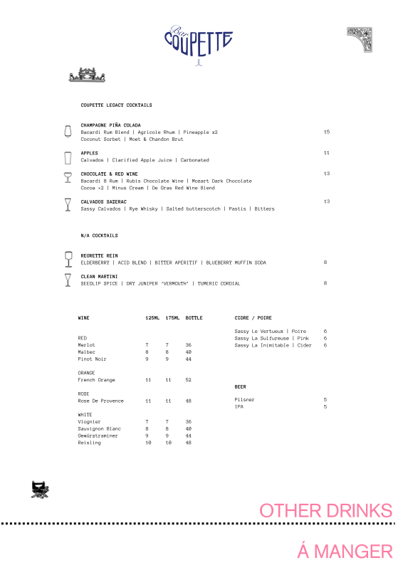 Coupette Menu